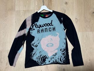 Camiseta Custo Barcelona, color negro con estampados multicolor, escote cuadrado, manga larga acampanada, y aberturas laterales. Tejido elastico. Talla 34. Composicion 100% Algodon. Muy buen estado. Medidas Hombros 34 cm Sisa a sisa 40,5 cm Manga 58 cm Cintura 36 cm Largo 49,5 cm