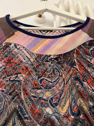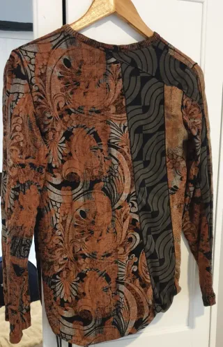 Camiseta de manga larga con un llamativo estampado. - Diseño con motivos florales y geométricos. - Combinación de colores vibrantes.
