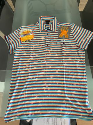 Preciosa camisa polo de Custo Barcelona, coleccion Space, Tiene dos parches bordados en el pecho. Talla 3. Utilizado en una ocasion xa sesion de fotos. Precio en tinda 98€.