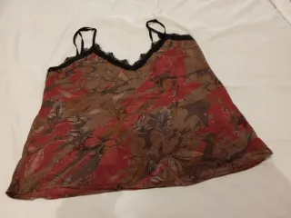 Elegante top lencero con detalles de encaje. - Adornado con encaje en el escote. - Bajo con banda de encaje. - Tirantes finos ajustables.