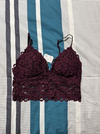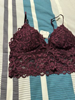 Top lencero Bershka morado con encaje