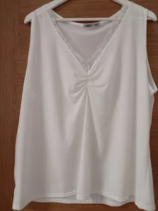 Camiseta de tirantes Esmara de canalé fino. El algodón puro aporta una gran comodidad. Talla 48/48 - Material: 100% algodón. - Diseño: Cuello en V con detalle de encaje. Nueva con etiquetas