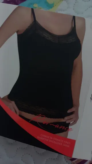 Conjunto negro 🖤de camiseta interior y braguita brasileña, marca Ysabel Mora.🎁🎁 Calidad y elegancia. Talla Mediana- M. - Camiseta con tirantes finos , ajustables y detalle de encaje. - Braguitas con cintura de encaje. - Nuevo con etiquetas y en su caja original.💯 - Precio no negociable. - 8€. - Envío rápido