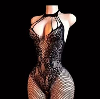 Este body de encaje es una pieza única y sensual. - Diseño de red. - Detalle de tirantes. - Incluye medias a juego.