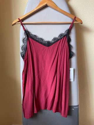 Camiseta tirantes granate encaje