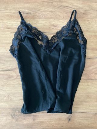 Top Zara Satén con Encaje Negro