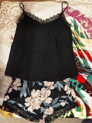 Pijama corto encaje negro y flores