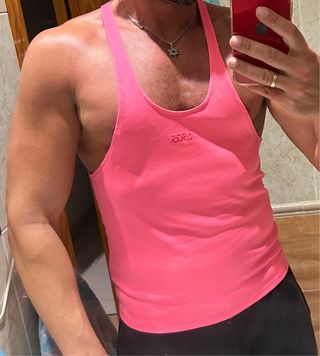 Camiseta de tirantes en color fucsia. Diseño deportivo y cómodo. - Tejido ligero y transpirable. - Corte que permite libertad de movimiento. Camiseta tirantes fucsia talla S Camiseta hombre tirantes fucsia Camiseta gym Camiseta gimnasio marca Asos talla S bien cuidada