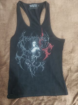 Breathe Divinity - Hollow Soul Bodybuilding Stringer- Talla L Descripción: Camiseta de tirantes estilo de la marca Breathe Divinity. Modelo con el gráfico "Hollow Soul" (diseño de figura oscura/encapuchada con estética gótica) nightmare. Detalles de la prenda: Marca: Breathe Divinity Talla: L. Corte: Stringer (corte no ajustado es algo holgado). Color: Negro con estampado frontal grande en tonos plateados/grises y detalles en rojo estilo "sigil" o tribal. Estado: Nueva sin etiquetas Estilo: Perfecta para estética Dark Gym, Y2K, Goth Fitness o Heavy Metal. El diseño frontal es muy llamativo, con una figura tipo "Dark Soul"