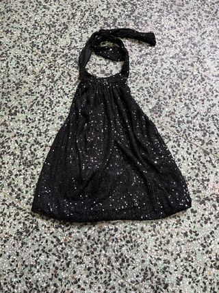 Top brillante con lentejuelas. - Diseño con tirantes al cuello. - Acabado con lentejuelas plateadas. SOLO ENVIOS