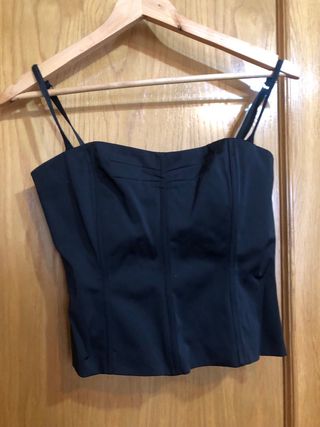 Top azul fruncido sin tirantes