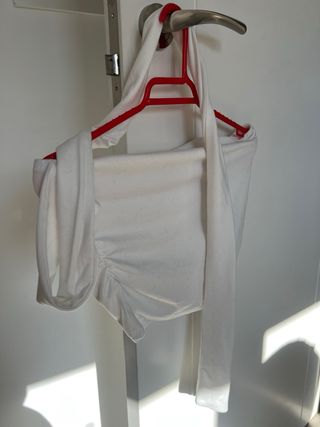 Top blanco sin tirantes cuello halter