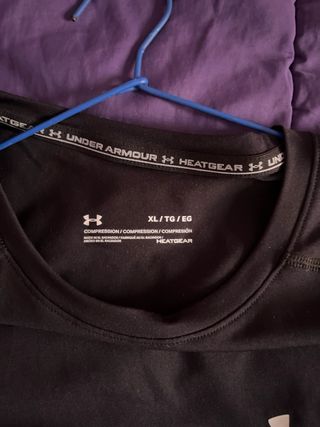 LA VENDO POR QUE ME GUSTA QUE ME QUEDE MAS AJUSTADA PERO ESTA PERFECTA. Tiene 2 usos. La talla es XL pero yo uso una M y me queda bien. Es bien elastica y se ajusta al cuerpo. Camiseta deportiva de manga corta Under Armour. - Logo de Under Armour en el pecho. - Costuras laterales marcadas. - Dos camisetas de tirantes talla m y ajustadas