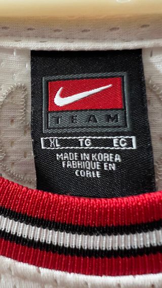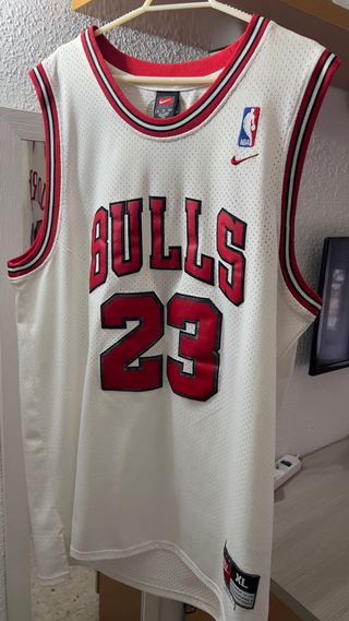 Camiseta de baloncesto Jordan de los Chicago Bulls con el número 23. - Diseño a rayas rojas. - Cuello y sisas con ribete blanco y rojo. - Inscripción CHICAGO en la parte frontal. - Número 23 en la parte frontal.