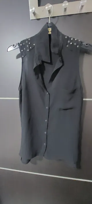 Elegante blusas negras con un diseño de volantes y otra de tachuelas en hombros sin mangas. - Tirantes finos ajustables. - Tejido ligero y vaporoso. - Doble capa de tela. Recogida.Barrio del pilar 28029