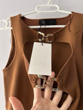 Top tipo corsé de Zara en color marrón. Un básico que no puede faltar en tu armario. - Diseño sin tirantes. - Costuras marcadas para un ajuste estructurado.