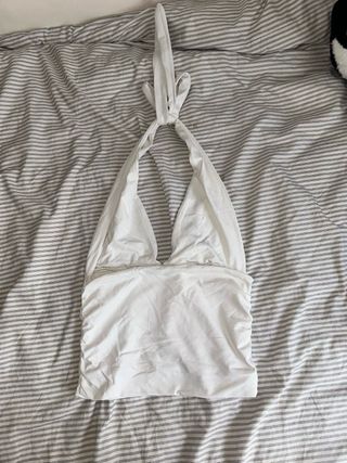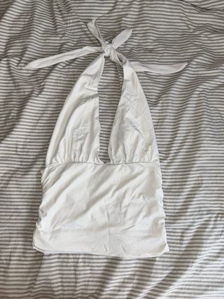Top blanco de Stradivarius - Tirantes anudados al cuello. - Tejido suave y elástico.