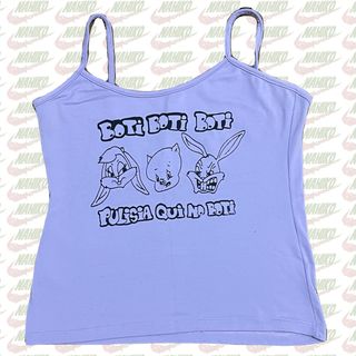 Top con estampado divertido de personajes. - Diseño único. - Estampado a mano. - Tirantes finos.