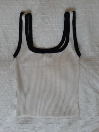 Top de tirantes con escote cuadrado y botones. Talla XS aunque equivale perfectamente a una S (lo vendo porque me va grande) Sin estrenar, conserva la etiqueta: precio original 25,99€ - Diseño de chaleco. - Bolsillos frontales. - Bajo curvo.
