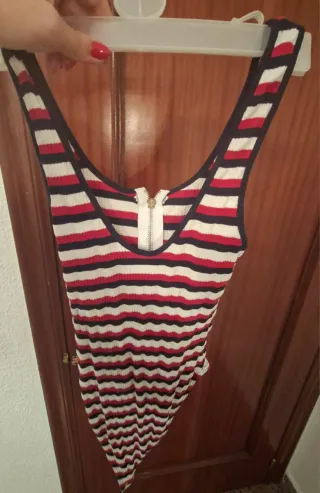 tirantes anchos,el delantero es muy original, género muy fresco, cremallera invisible detrás