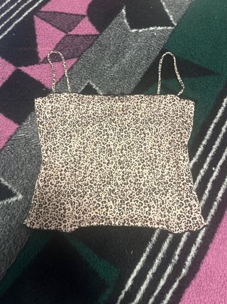 Camiseta de tirantes con estampado animal print. - Diseño de Bershka. - Base beige con estampado de leopardo en negro.