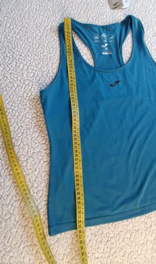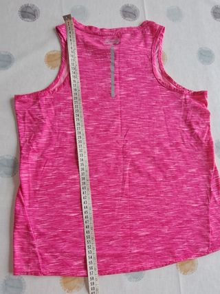 Dos modelos, ver todas las fotos. Precio unitario, si no se indica preferencia se enviará la de la primera foto. Camisetas de tejido ligero y transpirable, para running / deporte /entrenamiento. Tirante ancho, espalda nadadora y bandas reflectantes. Color rosa fucsia jaspeado gris (talla S) y color azul (talla XS). Chica/mujer talla 34-36. Ver medidas en fotos. Casi no usadas, en perfecto estado, sin deterioros.