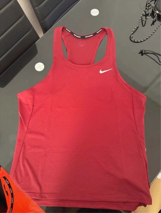 Camiseta de tirantes para running con tecnología Dri-Fit. - Tejido técnico transpirable. - Diseño sin mangas para mayor libertad de movimiento. - Logo de Nike reflectante. Muy poco uso.