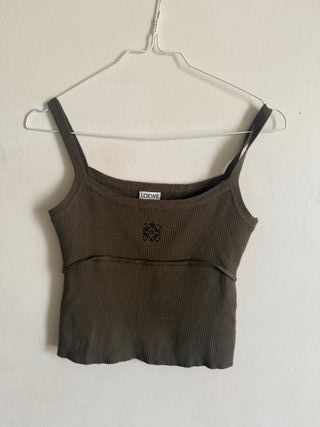 Top de tirantes Loewe en color verde oliva. Presenta un diseño acanalado y el logo de la marca bordado en el pecho. - Tirantes finos. - Escote redondo. - Logo de Loewe bordado. - Tejido acanalado.