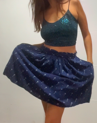 Top: De la marca Stradivarius, talla XS. Es un crop top de tirantes espectacular, cubierto de lentejuelas en tonos verde/azulado con reflejos que captan la luz. Falda: De la marca Tissaia, talla 42. Es una falda azul marino con un divertido estampado de palmeras y lunares, con mucha caída y lazada ajustable en la cintura, lo que permite adaptarla perfectamente a tu figura. #conjuntofiesta #lookinvitada #modamujer #outfitnoche #partyoutfit #sequintop #glamlook #summerstyle #ensemblefete #tenuefemme #paillettes #looksoirée #feestoutfit #damesmode #pailletten #zomerlook