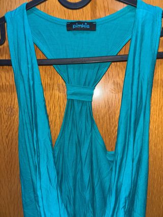 Camiseta sin mangas de la marca Pimkie en un llamativo color verde azulado. Su diseño es moderno y cómodo. - Tirantes finos. - Escote redondo muy caido - Detalle fruncido en la espalda.