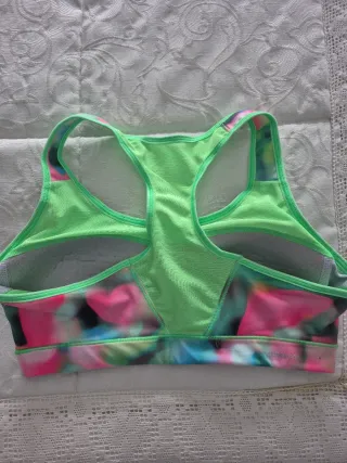 Top deportivo con un vibrante estampado. - Diseño con tirantes cruzados en la espalda. - Ribete en contraste de color verde neón. No me desplazo, no hago cambios