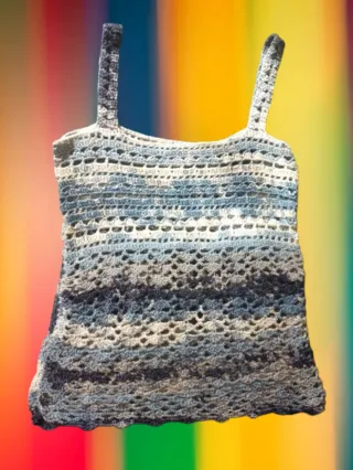 Top de tirantes tejido a crochet con un diseño de rayas en diferentes tonos. - Tejido de punto calado. - Diseño de tirantes. - Acabado con borde festoneado.
