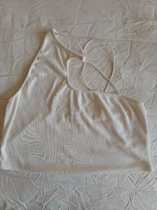 Camiseta de tirantes con un diseño moderno y cómodo. - Tejido acanalado. - Tirantes finos cruzados en la espalda. - Corte asimétrico.
