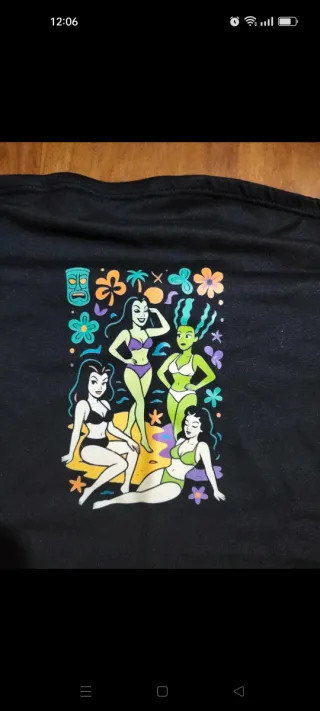 Este top negro con estampado veraniego es perfecto para un look atrevido. - Diseño con Ghouls en la playa. - Sin tirantes - Estampado multicolor.