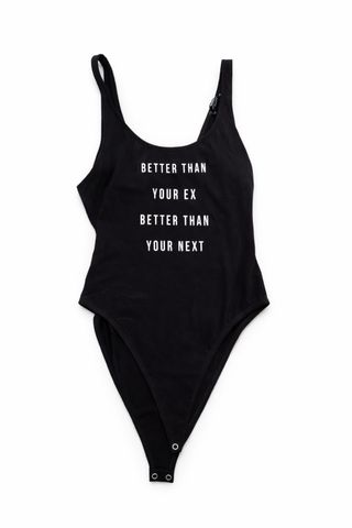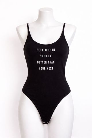 Body negro con tirantes finos y un mensaje divertido. - Diseño con texto Better Than Your Ex Better Than Your Next. - Cierre de corchetes en la parte inferior. Puesto una vez