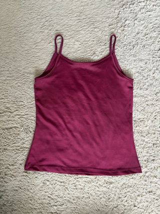 Top de tirantes para mujer. Tiene una pequeña imperfección en el tirante, pero no se nota puesto. - Diseño liso. - Tejido suave y elástico.