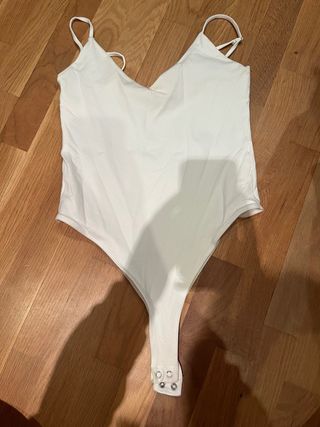 Body básico de tirantes finos. con cuello en pico, en perfecto estado pero en el pico esta un poquito deshilachado - Escote en V. - Cierre de corchetes en la parte inferior.