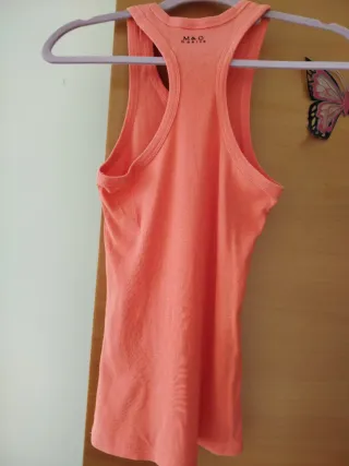 Top básico imprescindible, súper cómodo y favorecedor. Tiene tirantes finos y detalle de botones en el pecho que le da un toque muy bonito. El tejido es elástico y se adapta genial al cuerpo. Ideal para verano o para combinar con chaqueta en entretiempo. Lo vendo porque ya no lo uso, pero está en perfecto estado.