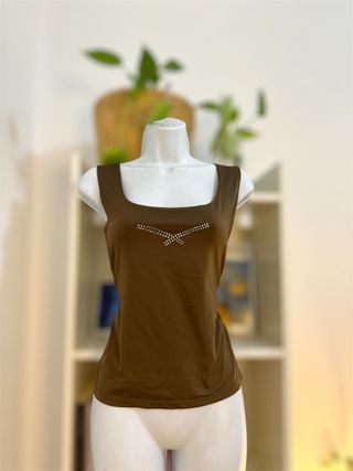 Top marrón chocolate tipo licra Y2K 2000 strass