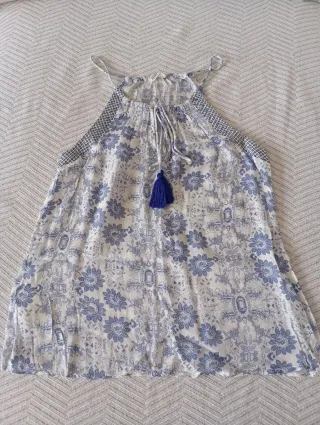 Top de tirantes con un bonito estampado floral. En la etiqueta pone S pero es completito como para M - Diseño con escote en V. - Tejido ligero y fluido.