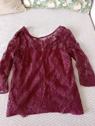 Blusa encaje Mango burdeos