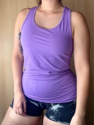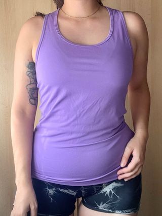 Camiseta deportiva de tirantes en color morado. Perfecta para actividades deportivas o uso casual. - Diseño de tirantes. - Tejido ligero y transpirable.