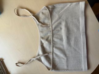 Precioso top blanco de tirantes, estilo cropped. Es de algodón y tiene un tacto muy suave. SIN USO - Diseño de tirantes finos. - Corte cropped. - Acabado de canalé.
