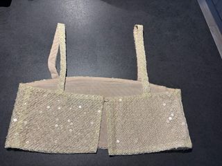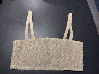 Top corto con lentejuelas brillantes. - Diseño elegante con tirantes. - Acabado metalizado.