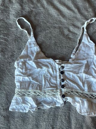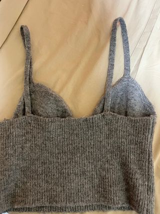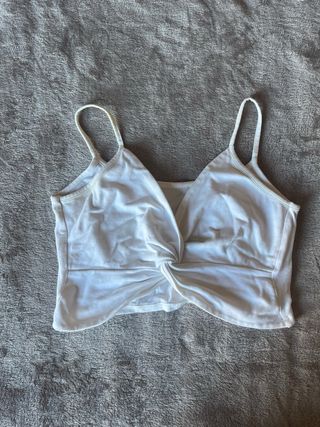 Diseño cruzado y anudado en la parte delantera. - Tirantes finos. - Tejido suave y elástico. - Corte cropped. - Buenas condiciones