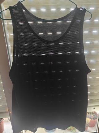 Preciosa camiseta de tirantes negra, ideal para hacer deporte o para el día a día. - Talla S pero es holgada. - Tiene un diseño sencillo y elegante. - Está en perfecto estado.