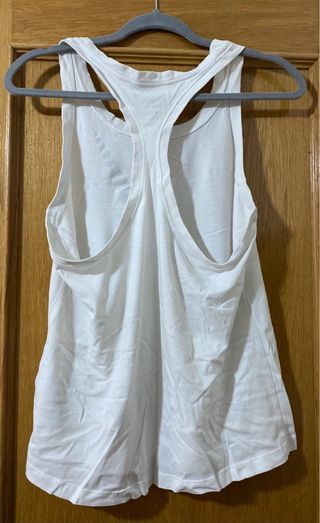 Preciosa camiseta de tirantes de Nike en color blanco. Es una prenda bonita y cómoda, ideal para el verano. Soy talla M y me viene igual! - Diseño deportivo con el logo de Nike. - Escote en pico en la espalda. - Corte ligeramente acampanado.