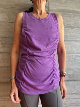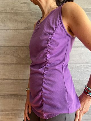 Camiseta deportiva de tirantes con un diseño moderno y favorecedor. - Detalle de fruncido lateral. - Cuello redondo. - Tejido suave y transpirable. - Forro interior de poliamida que da forma a tu figura y evita la sudoración. - A mí me queda fatal, mi talla es dos tallas menos pero aseguro que es ideal.