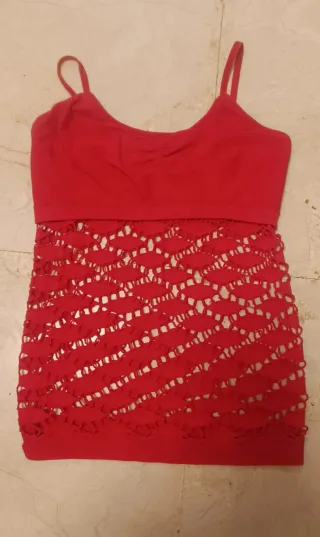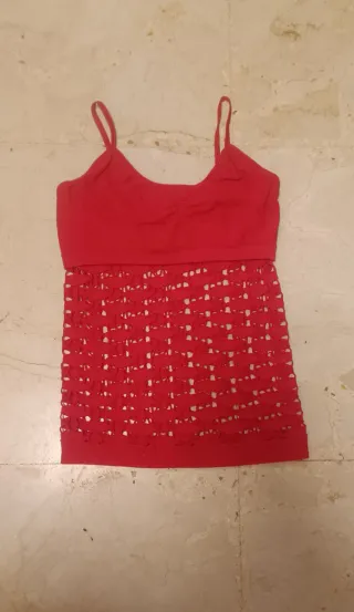 Top de tirantes finos con un diseño de transparencias recortadas en la parte inferior. No lleva etiqueta ni de talla ni de composición. Mide 27 cm de ancho bajo el pecho, dónde es elástico. Y unos 39 cm de largo desde la costura del tirante al bajo, donde también es elástico. Entrega en mano en Murcia y Cartagena o envío. VER MÁS COSITAS EN MI PERFIL, HAY COSAS QUE REGALO