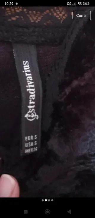Camisa de tirantes aterciopelada y con puntillas negras. Es una talla S grande. En perfecto estado.